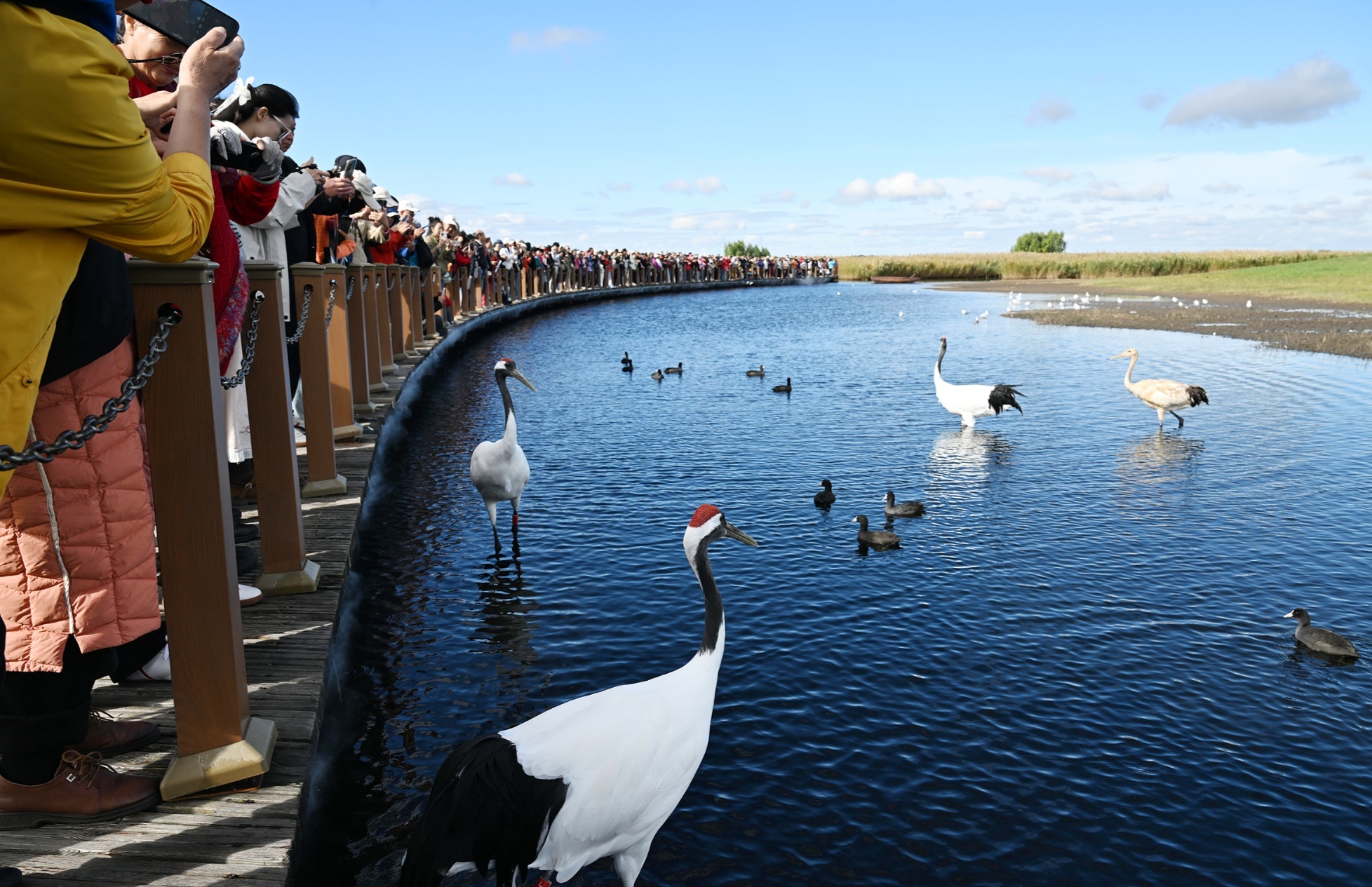 欢迎来到扎龙生态旅游区——世界大湿地,中国鹤家乡!作为世界闻名的丹顶鹤繁育栖息地,这里不仅有“晴空一鹤排云上,便引诗情到碧霄”的生态美景,更是人与自然和谐共生的生动写照。双节期间,景区全面升级“鹤仙子”游船互动体验,准备多项妙趣横生的互动游戏,让大家既能沉浸式感受湿地生态之美,又能深入了解野生动物保护的重要意义,在休闲游览中收获生态知识。